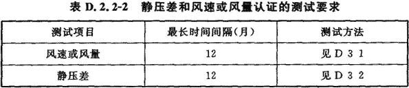 D.2.2 空氣潔凈度等級、靜壓差、風速或風量的認證測試的最長時間間隔應(yīng)符合表D.2.2—1和表D.2.2—2的規(guī)定。