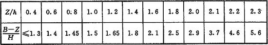注:當(dāng)Z/h>2.3時(shí),建筑物的相關(guān)尺寸可不受限制。